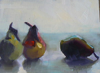 450 + shipping The owner of the Etsy site, Dandeliondecor gave me permission to use her image. The teapot is no longer available but I am happy to have this painting. I was attracted by the wavy lines, the beautiful china roses and the sweet curvy handle. The painting is soft and subtle, but it catches my eye every day as I walk by it. Yes, one of the perks of being an artist, is lots or original art on your walls. Several years ago I did lots of still life teapots and flowers and food items. I am getting in the mood to return to these subjects. I hope you enjoy this daily painting today and I hope you will pin it. |
